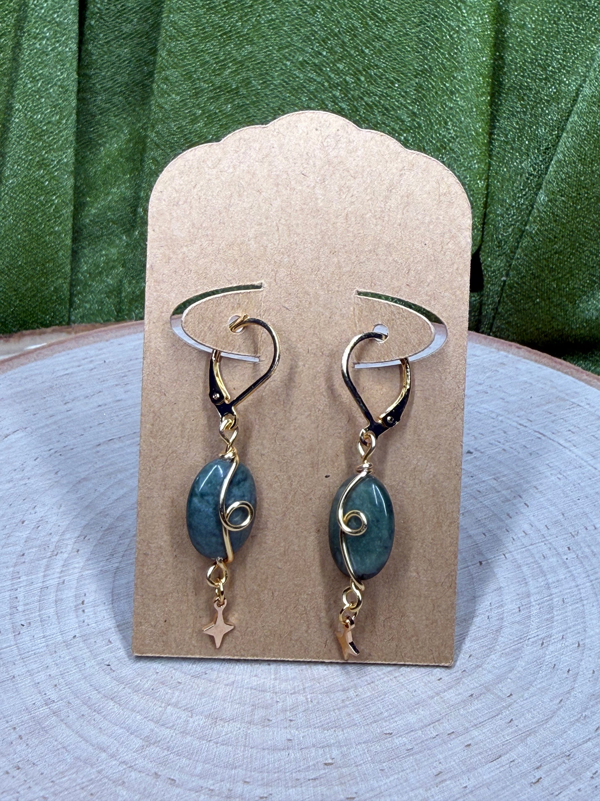 Jade earrings in gold.